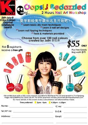 So now nailart and Jolin fans, why waste your time during weekends when you can pick up a new skill and enrich your free time? Register now before seats are gone! For registration, either pick up a form at any K Box outlets or click on the image below to print out the form now! Do visit